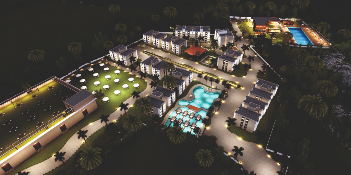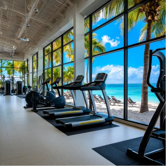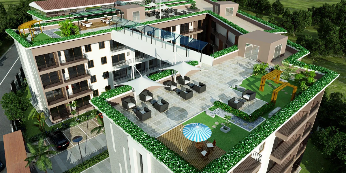 Rooftop pools, lounges, gym, social club, and wellness zones.